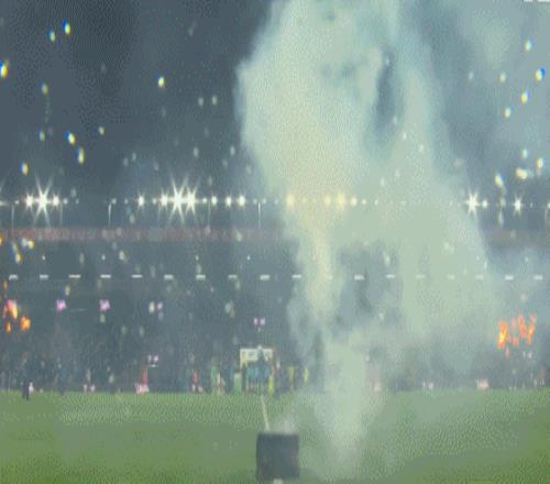 雙方球員正在進場,比賽即將開始