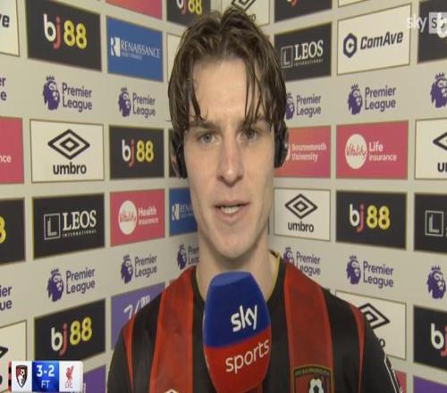 英超第23輪,伯恩茅斯主場(chǎng)3-2擊敗利物浦,賽后,伯恩茅斯中場(chǎng)亞歷克斯-斯科特接受了天空體育的采訪。